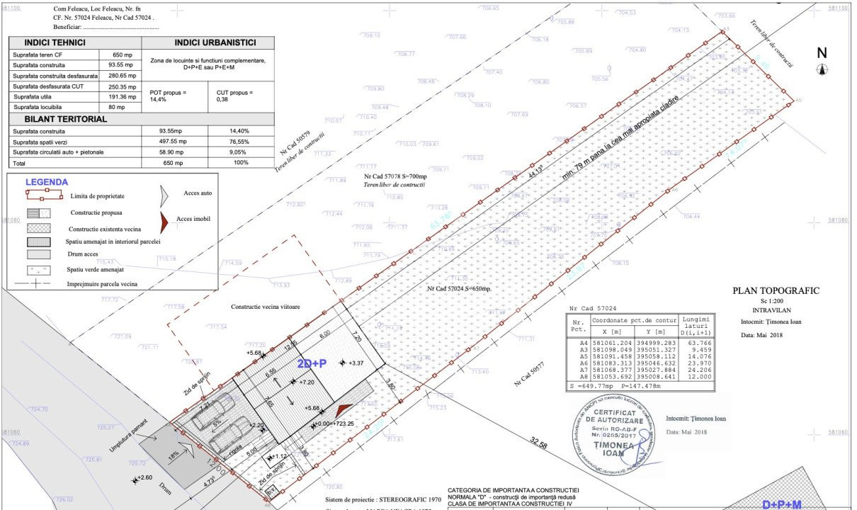 În trecut a fost inițiat un proiect de autorizare, care nu a fost finalizat, oferind însă noului proprietar posibilitatea de a continua sau adapta proiectul conform propriilor preferințe și viziuni arhitecturale.